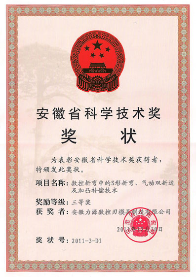 日前,一項(xiàng)由我公司牽頭,聯(lián)合合肥工業(yè)大學(xué)、安徽恒明模具科技有限公司共同研發(fā)的新技術(shù)成果“數(shù)控折彎中的S形折彎、氣動(dòng)雙折邊及加凸補(bǔ)償技術(shù)”經(jīng)過層層評(píng)選,最終獲頒安徽省科學(xué)技術(shù)獎(jiǎng)三等獎(jiǎng)。