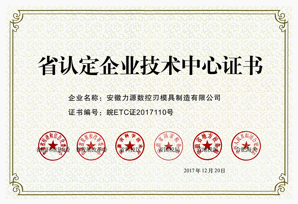 安徽省認(rèn)定企業(yè)技術(shù)中心證書